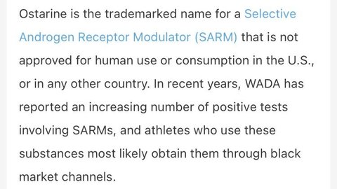 1 약물 성분에 오스타린 이라는 성분이 나왔고 오스타린은 합법적으로 구매할 수 없는 약물임 올림픽에서도 금지인 약물