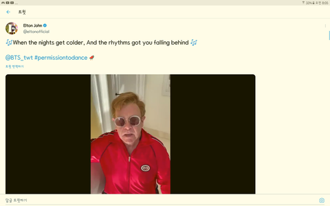 엘튼 존 경께서 트위터에 올린 내용. pemission to Dance 노래 부르셨다!
