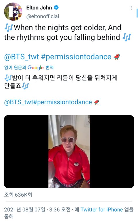 엘튼존이 방탄 퍼투댄 조금 불러줌