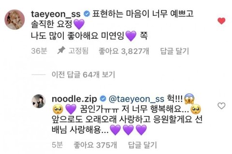 미연하고 태연하고 따스한 댓글 주고 받는거 넘나 좋음