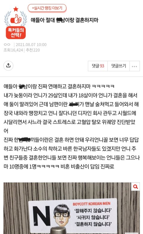 짱깨들 좌표찍고 또 혐오글 톡선에 올렸어