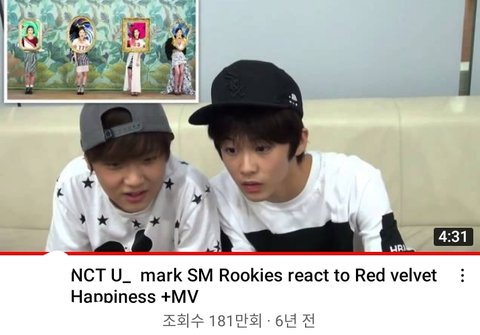 해찬이랑 마크가 레드벨벳 행복 뮤직비디오 보고있는 영상