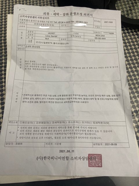소비자 세탁부주의라고 하여 너무 억울합니다.