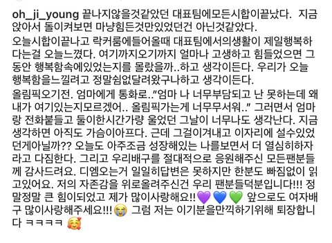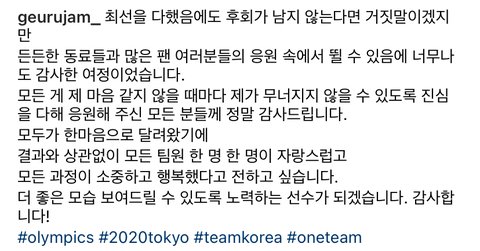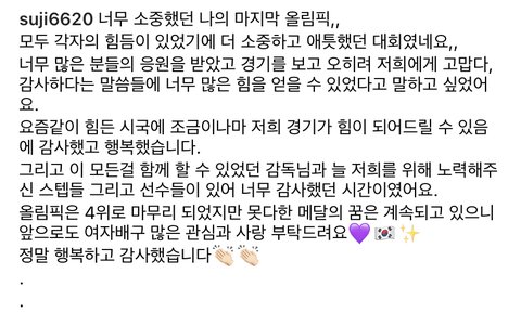 긴 내용인 선수들 인스타 한번 봤는데 슬픈 것도 있고 나중에 더 희망인 선수들도 있어서 좋았음