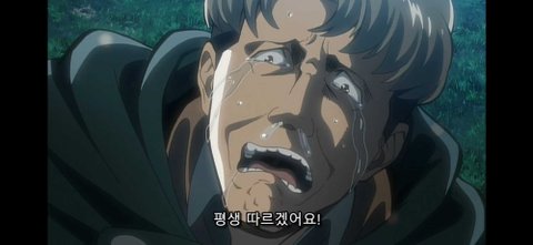 '일제 랑그너의 수첩'에서 리바이가 자신을 살려주자 "평생 따르겠어요!"라며 울면서 맹세함