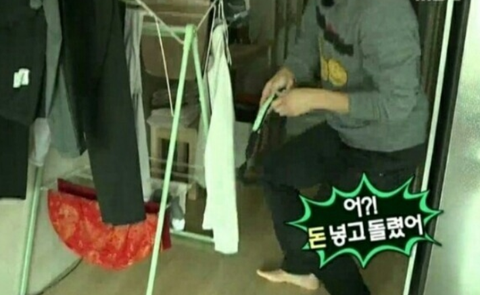 바지 주머니에 돈을 넣고 세탁기에다 돌림