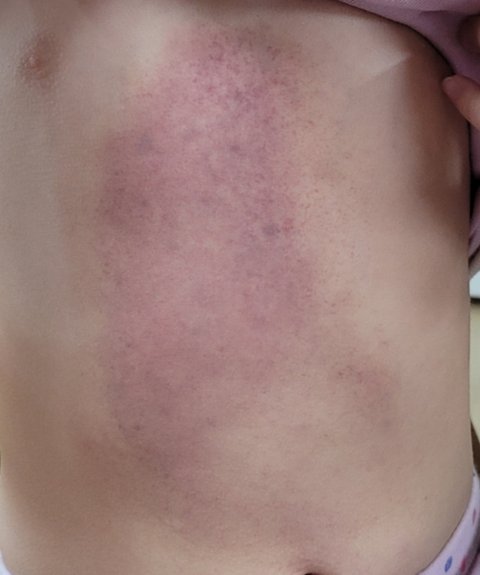 아이를 씻기려고 옷을 벗겼는데 가슴 배 전체가 빨간 멍으로 가득했고 왜 그런거냐고 물었더니 아이가 울며 큰고모가 누우라고한다음 주먹으로 계속 때려서 너무 아팠고 눈물이나와서 우는데 아빠가 두 손을 붙잡았다고했습니다.