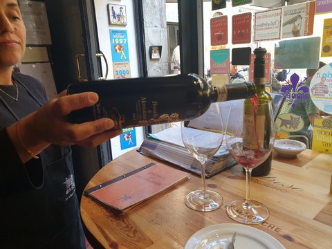 와인리스트를 보고 고르면 한 잔씩 점원이 와인잔에 따라주심. 와인을 여러가지로 맛보고 오고 싶은데 1병 단위로 구입하기는 부담스러울 때 방문하면 딱! 테이블이 많지는 않지만 가게에서 마시는 손님들을 위해 테이블도 1-2개 마련되어 있어서 편하게 마실 수 있었음.