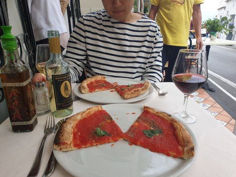 딱 저 풍경이 보이는 자리에 앉아서 식사를 함. 포지타노는 섬을 둘러싸고 이런 분위기의 맛집들이 가득가득해서 정말 휴양지로는 최고였음ㅠㅠㅠ 코로나로 해외여행을 못가는 지금 제일 많이 생각나는 곳.
