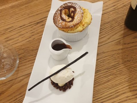 수플레 팬케이크같은데 쇼콜라를 셰프님이 직접 부어주시고 나면 작은 스푼으로 떠먹을 수 있음. 위가 쇼콜라를 붓기 전, 밑이 셰프님의 손길을 거친 후ㅋㅋ 진짜 입에서 사르르 녹아 없어지는 빵에 눅진하고 진한 쇼콜라. 바닐라빈이 콕콕 든 바닐라아이스크림까지 최강조합.