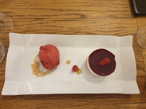 두 번째 디저트는 베리무스케이크와 딸기 아이스크림의 조합.