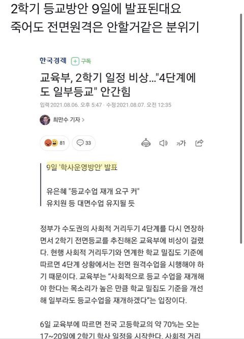 ?? 전면등교 9일에 발표된다는데?