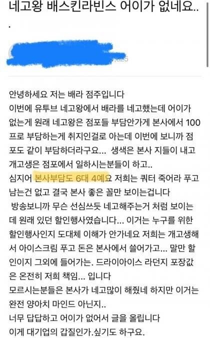 헐 뭐야 본사부담이 아니라고..? 먹고싶어서 예약해서 먹고있는데 진짜 너무하네 악질이야