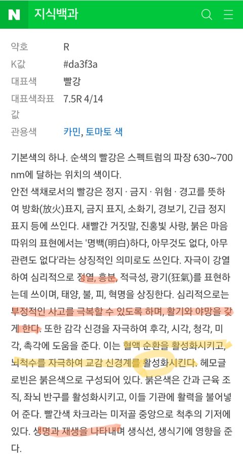 붉은색: 생명과 재생 의미