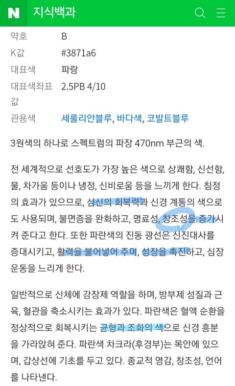 파랑색: 심신의 '회복'력 의미