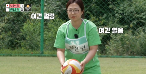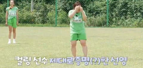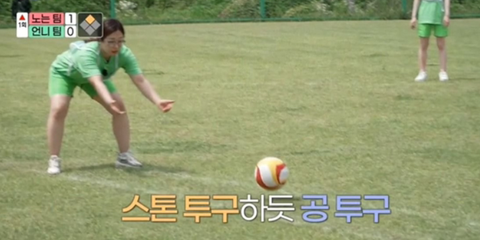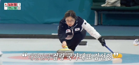 컬링 스톤 투구하듯이 공을 투구한 김선영 선수