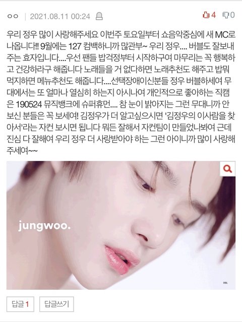 정우 음중 엠씨 + NCT127 컴백 많관부❤️❤️❤️