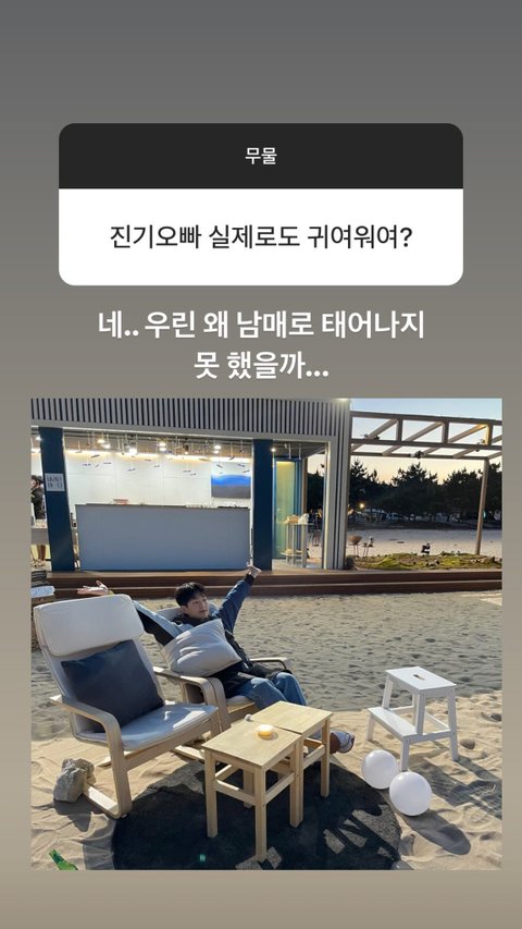 남매로 태어나지 못해서 아쉽다고ㅎㅎ