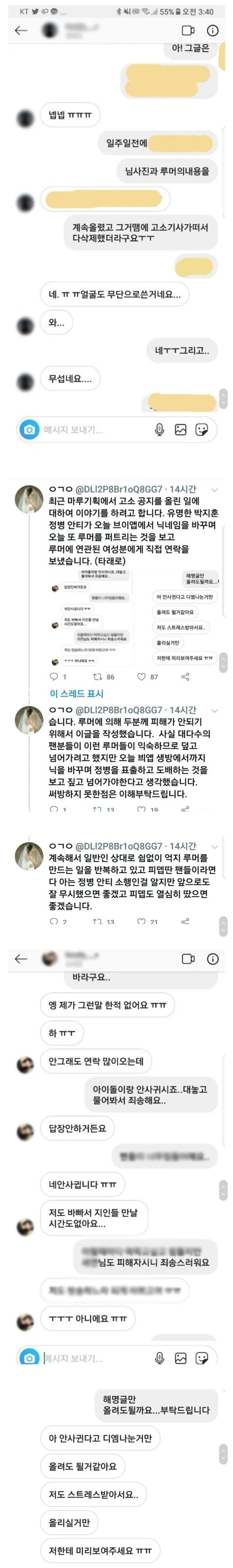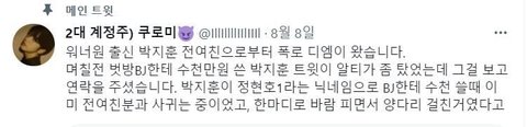 재발 이거 좀 보세요. 박지훈 사건 해명글: