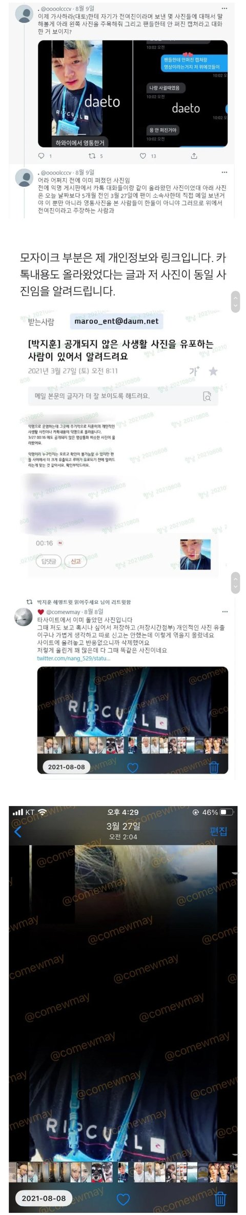 결정적으로 박지훈과 함께 찍은 투샷 증거자체가 없다는게 핵심포인트.