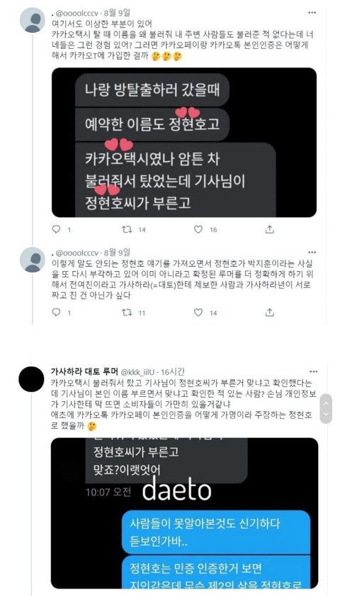 - 카카오는 본인인증이 아니면 남의 이름을 불가능하며 택시 탈 때 이름부르는 경우가 없음