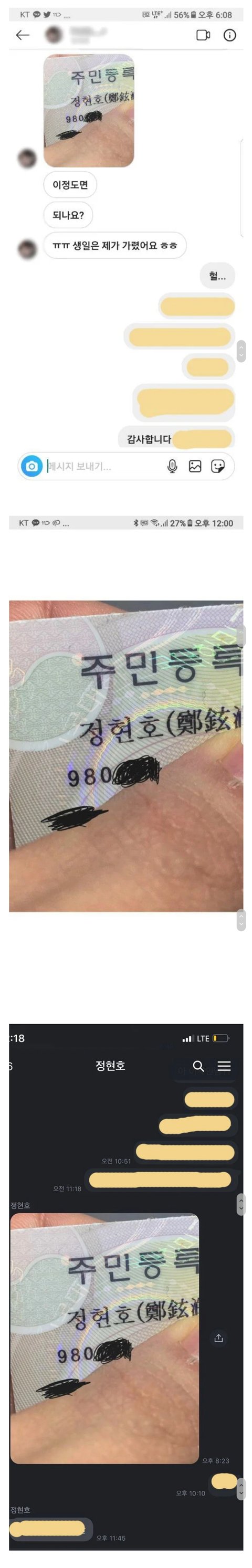 (BJ가 직접 정현호님한테 연락해 주민번호 인증까지 받아줌)
