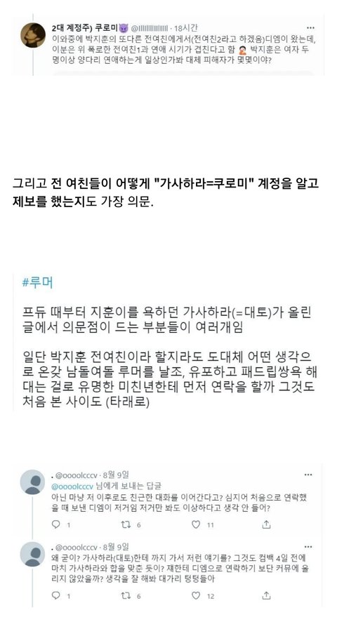 전 여친이라고 주장하는 여친 2명 모두 "가사하라=쿠로미"에게만 제보함