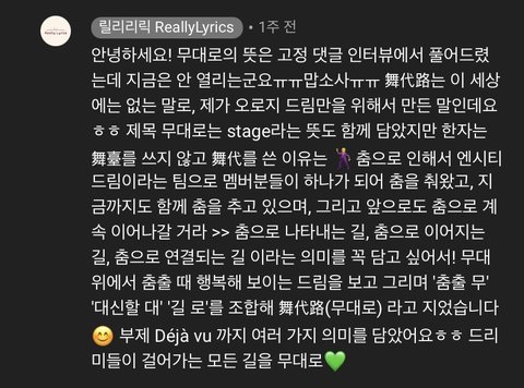 드림을 위해 만든 단어래,, 진짜 ㅈㄴ 감동이다..