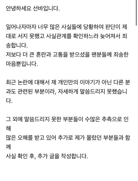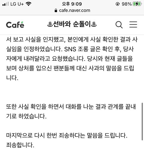 아니 근데 솔직히 나도 선바논란들 보고 어이가 없긴했는데 이렇게 까지 크게 욕먹어야 할 일인지 잘 모르겠음..걍 평소 이미지가 너무 선해서 한번에 떨어진 것 같음 뭐 범죄를 저지른것도 아니고 도의적으로 문제를 저지른 것도 아니고 여자친구때문에..?ㅂㅅ같은 여친사귀었다고 욕먹는거임?벗방비제인거 알았다고 쳐도 일단 순돌이들이 화난건 여친이 순돌이를 욕해서가 가장 큰 거 아니었음..?그리고 야갤은 솔직히...첫번째 해명문을 믿을 수 밖에 없는게 보통 야갤이나 일베하는애들 보면 평소에도 기미가 보이거나 진짜 말 한번하는 거에서 은은히 묻어나오는 경우가 많은데 4년방송하면서 단 한번도 티가 난 적도 없고 말하는 거에 그 사상이 베어있지 않는다는건 그냥...첫번째 해명문이 맞는 거같음