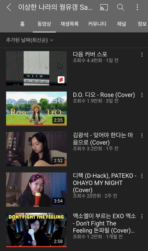 근데 엑소엘인가봐 닿은순간부터 커버한 노래 많네