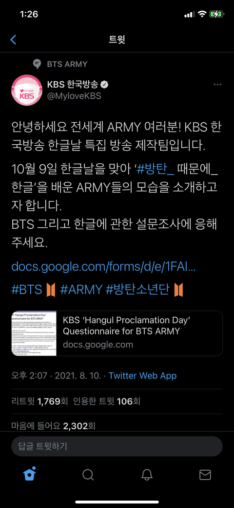 한글날 방송 특집에 아미 나온댕