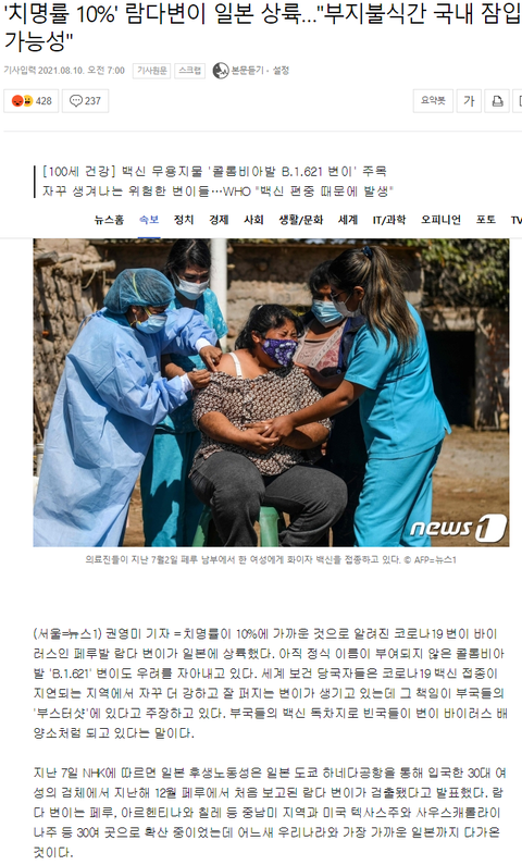 치명율 10%인 람다변이가 일본에 상륙했다네요.