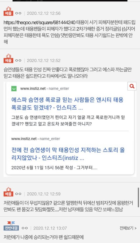 슴연생 여러명이 태용 성격더럽다고 얼굴까고 말함+