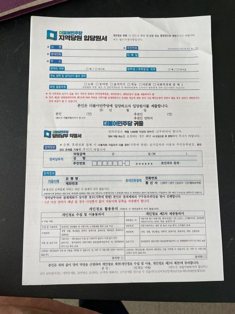 지방 중소기업 다니는데오늘 갑자기 불러서 바로 윗 상사가 더불어민주당 당원입당원서 쓰라고 하네요천원 버린다고 생각하고 ..