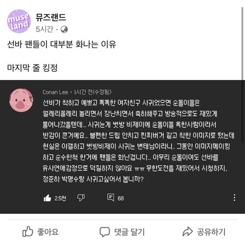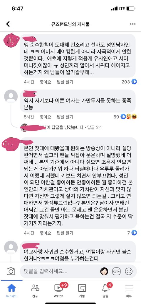 걍 즈그들은 벗방하는, 몸 파는 여자랑 사겨도 상관 없다는거지 개 추잡하네