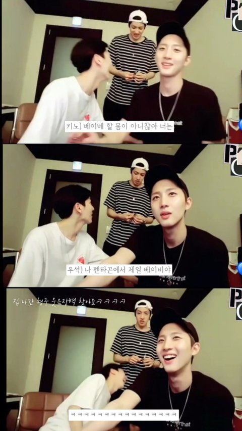 빠른 98이라 연습생 초반에 다른 막내들에게 한달간 형 소리를 들었던 키노(지금은 그냥 서로 반말 중)