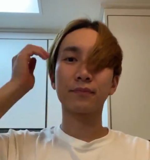 머리카락으로 한쪽 가리면서 "이렇게 무대 멋있게 하다가"