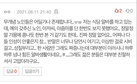 일하면서 다행히 싫은소리 들은 적은 없었는데.. 술도 판매하는 식당이었고 어르신들이 칭찬하면서 손잡고 그럼. 진짜 너무 싫었다. 자꾸 말끝마다 딸같다고 하는데 , 집에가서 딸 손이나 잡아주지