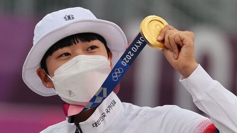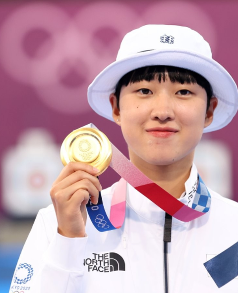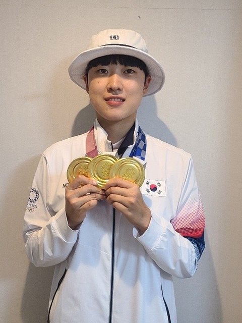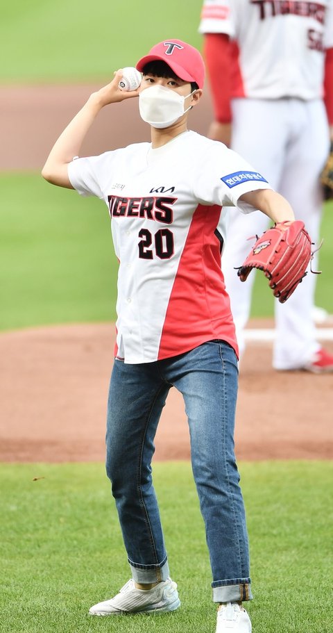 2020 도쿄올림픽 양궁 3관왕 안산 선수가 11일 광주 기아챔피언스필드에서 열린 KIA 타이거즈와 한화 이글스 경기에 시구를 함
