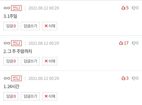 + 아 그리고 몰랐는데 판에 투표기능도 있었어 머쓱ㅎㅁㅎ;; 근데 피시로 해야 할수있대 다음에는 항목 많으면 투표기능 활용해서 투표하자ㅋㅋㅋ
