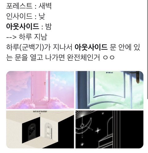 아웃사이드 컨셉은 인사이드 활기차고 밝은 느낌이랑 정반대가 될 것 같음