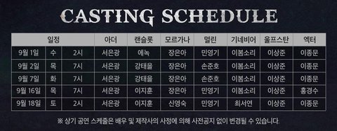 엑스칼리버 2차 스케줄 좌석배치도 나왔어 !!