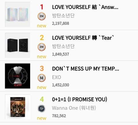 엑방원은 예의상 데뷔순으로 불른거고 실제인기는 워너원>방탄>>엑소 19부터 방탄 독주