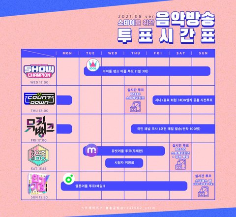 스테이를 위한 음악방송 반영 비율 및 투표 시간표