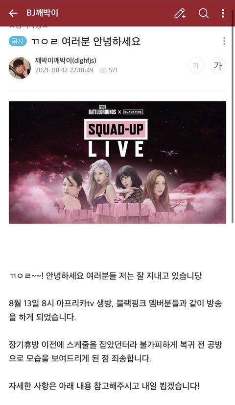 블핑이랑 비제이 깨박이 낼 같이 배그 방송한대 신기행