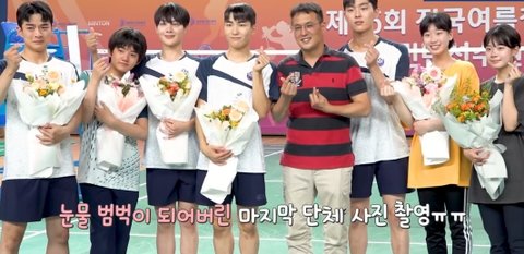 배우들이랑 감독님 마지막 단체 사진 찍는데