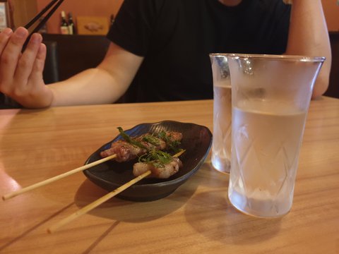 어느 부위인지 모를 닭의 꼬치. 일본어 잘 몰라서 아무거나 시켰는데 닭꼬치맛이라 다행이었음.