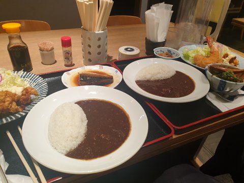 치킨난반?과 카레라이스, 고등어조림을 기본 세트로 주는 곳. 가성비가 아주 좋지만 짜서 맛은 그저 그랬음. 잡지에 학생들이 데이트 할 때 많이 오는 집이라고 소개되어 있더라. 딱 대학가 주변에서 볼 수 있는 정도의 맛.