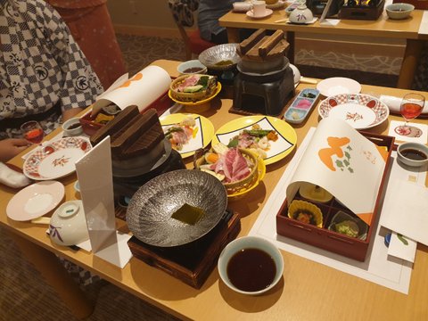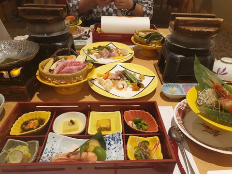 반찬이 워낙 종류가 많고 화려해서 대접받는 느낌 물씬. 스키야키는 존맛이었으나 화려한 구성과는 달리 반찬의 맛은 그닥 그랬음. 특히 야채절임?? 류는 특유의 향이 강해서 불호였고 반찬에 찬 기운이 돌아서 식은걸 싫어하는 내 입맛에는 그저그럼.