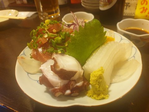 오스스메를 부탁해서 받은 메뉴였는데 회는 실패가 없지. 매우 맛있게 잘 먹음. 특히 문어가 질기지 않고 부드럽고 탱글해서 매우 만족. 참치도 비리지 않았음. 전반적으로 가성비가 좋은 편은 아니었지만 분위기와 맛을 생각했을 때 한 번 가봄직한 곳이었음.